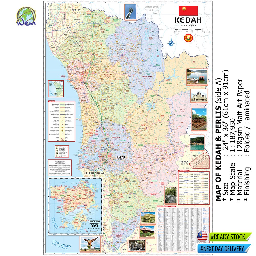 Road Map Of Kedah Perlis Peta Panduan Jalan Kedah Perli 吉打州与玻璃市州街道详图 Shopee Malaysia